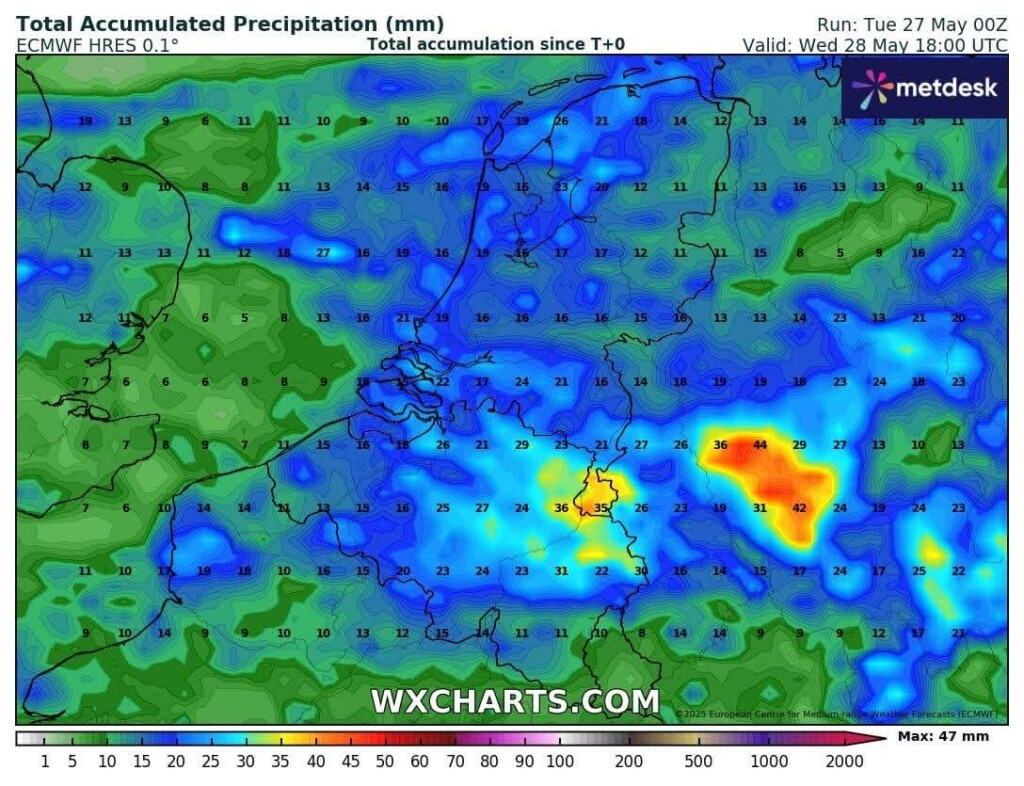 En als die regen vandaag en morgen valt kan dat wat worden zaterdag.