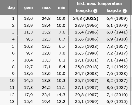 Ik neem aan dat je bedoelt: nog geen zomerse dag. Ik tel zes warme dagen in De Kooy. Drie in april en drie in mei, met op 1 mei een dagrecord van 24,8°C, wat toch wel bijna zomers is. Alleen de laatste twee weken onder de 20 graden, dat wel.