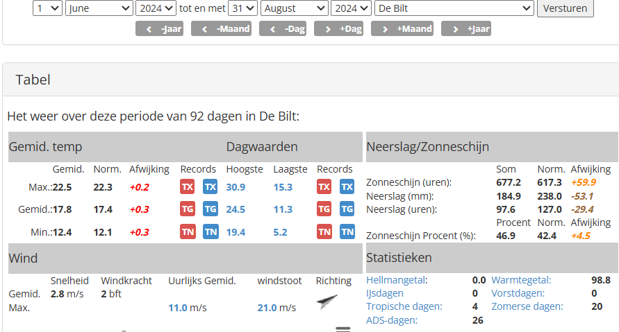 Of altijd De Bilt of altijd Volkel. Afgelopen 7 zomers in Volkel