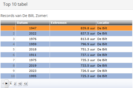 Edit: Ook het recordaantal zomerse dagen (64) en tropische dagen (18) voor De Bilt is daarna nooit meer geëvenaard of verbroken. Slechts geschrapt door hetzelfde probleem als in de eerste zin. Tevens nog altijd de zonnigste zomer en helemaal de zomer met veruit de grootste positieve anomalie voor de seizoenssom zonuren.