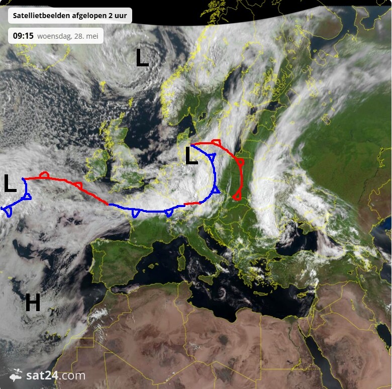 We moeten het maar weer hebben van de spaarzame opklaringen komende tijd en de droge momenten pakken als je buiten wat te doen hebt want voorlopig is het wisselvalligheid troef op onze breedte graad en het is juist het zuiden (Spanje Portugal) waar juist het weer nu is opgeknapt.