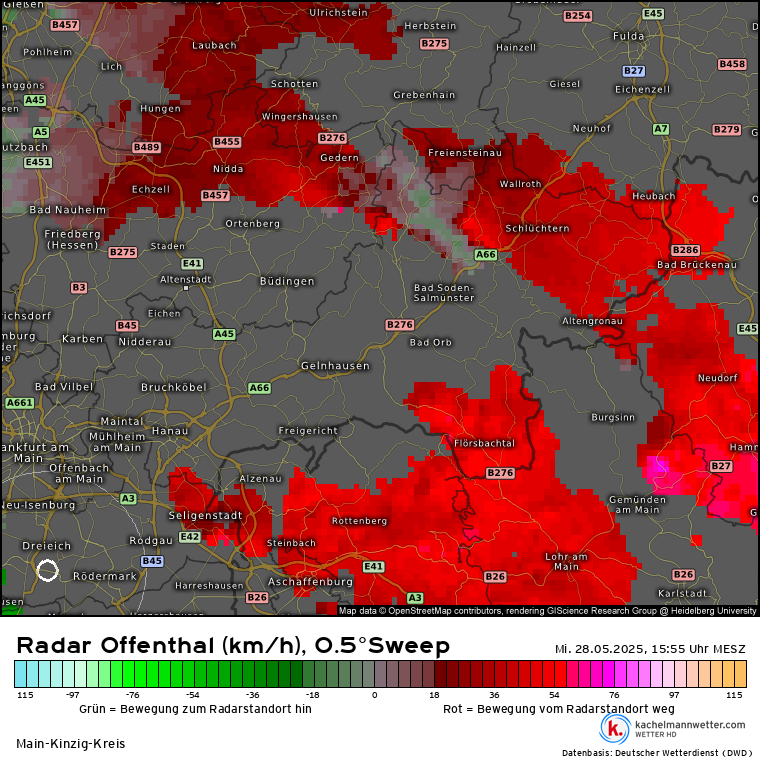 Philippe Ernzer van Meteo Boulaide meldt een tornadovorming (met beelden) bij Steinau, tussen Frankfurt en Fulda, tegen 16 uur.