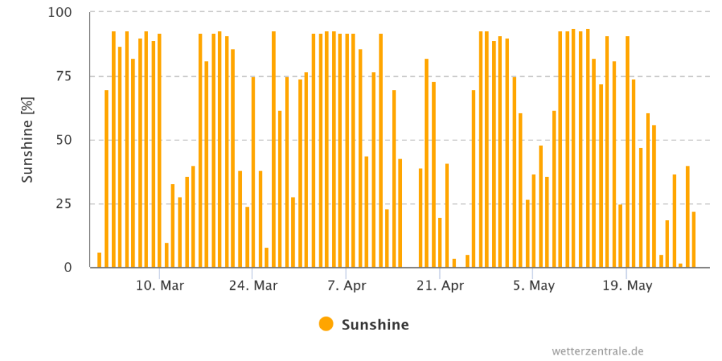 Ja, echt amper zon de afgelopen maanden in Volkel. 99% van de tijd bewolkt.