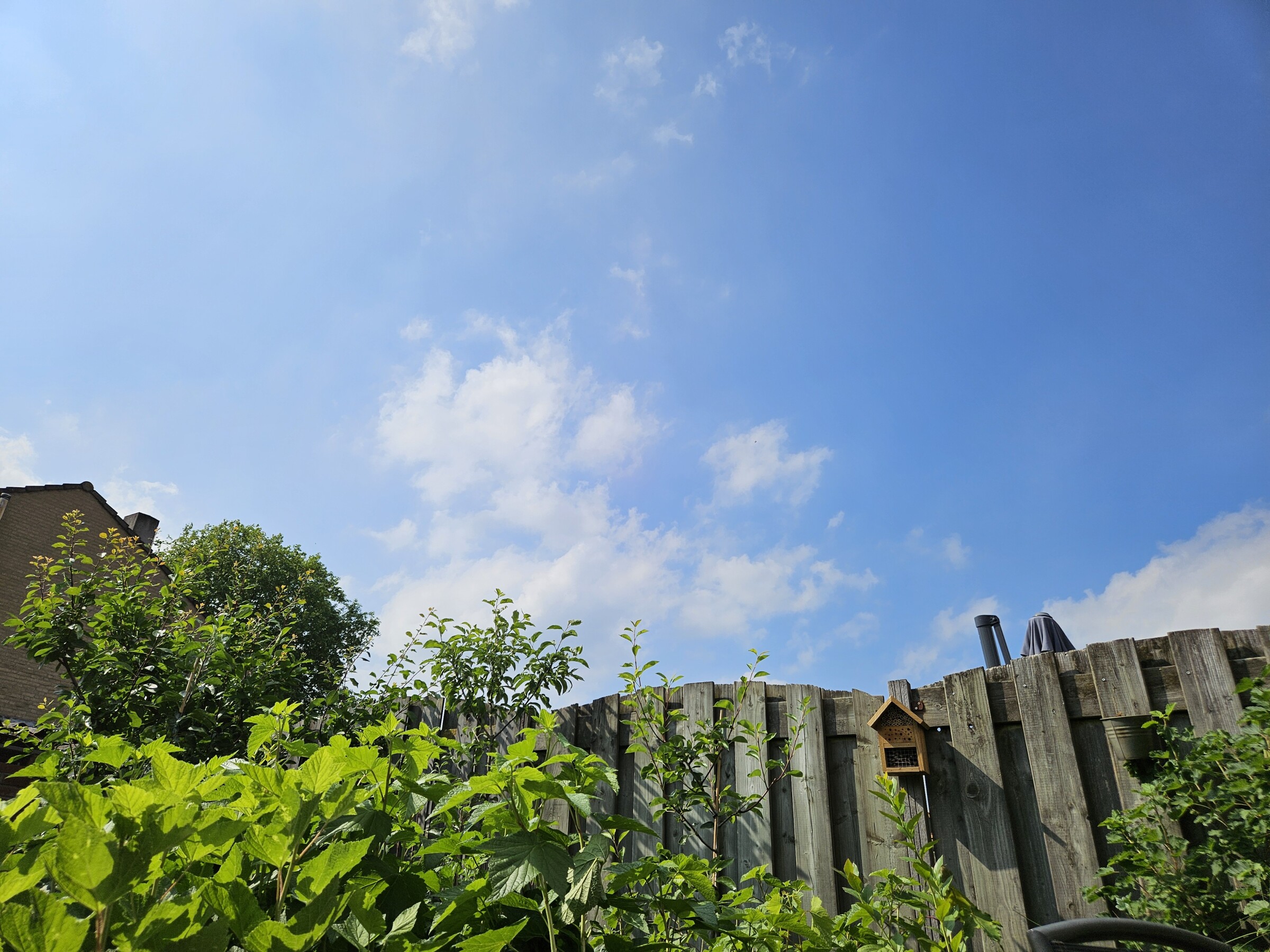 Begint langzamerhand vrij aardig weer te worden buiten in de achtertuin, uit de wind uiteraard. Wel opvallend heiig, veel vocht in de lucht.