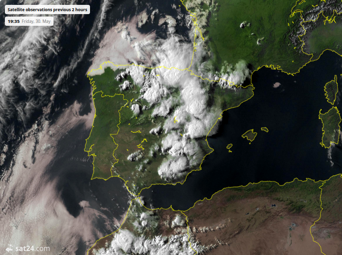 Vrijwel windstil en een hele kalme en heldere zee. Vanaf het strand was er wel wat dynamiek zichtbaar richting noorden / Sierra Nevada. Ziet er ook mooi uit op de satellietfoto.