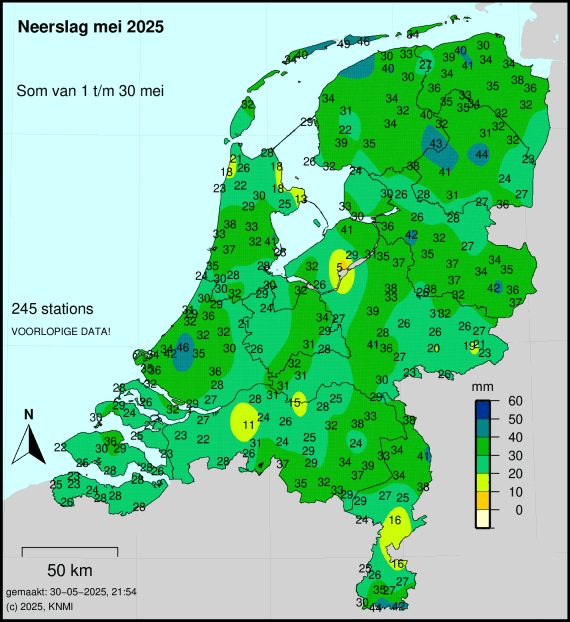 Mei 25 mm - April 31 mm - Maart 6 mm