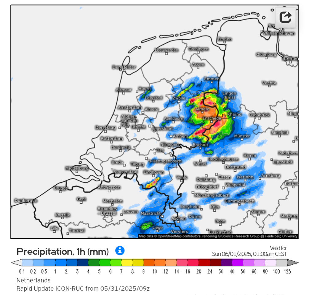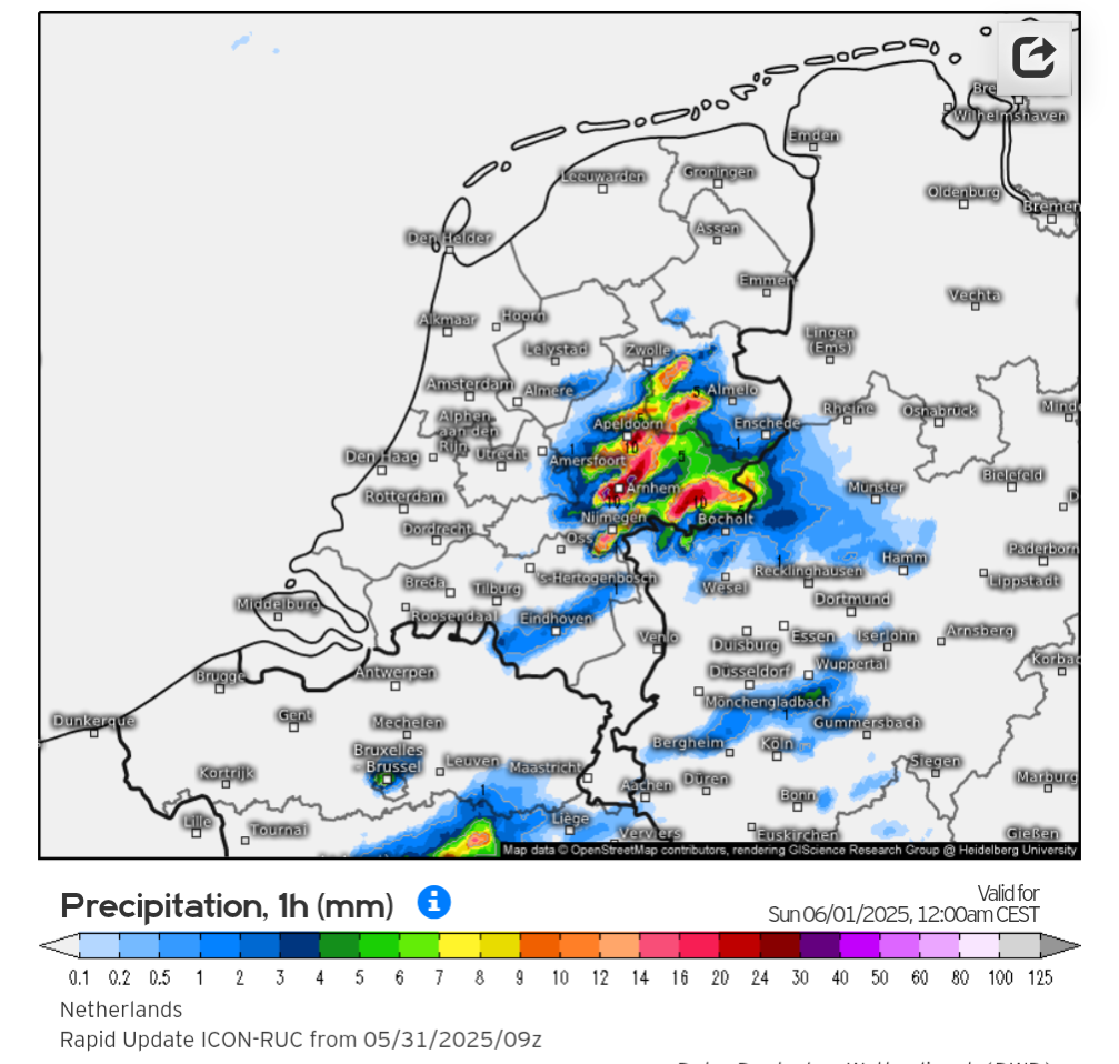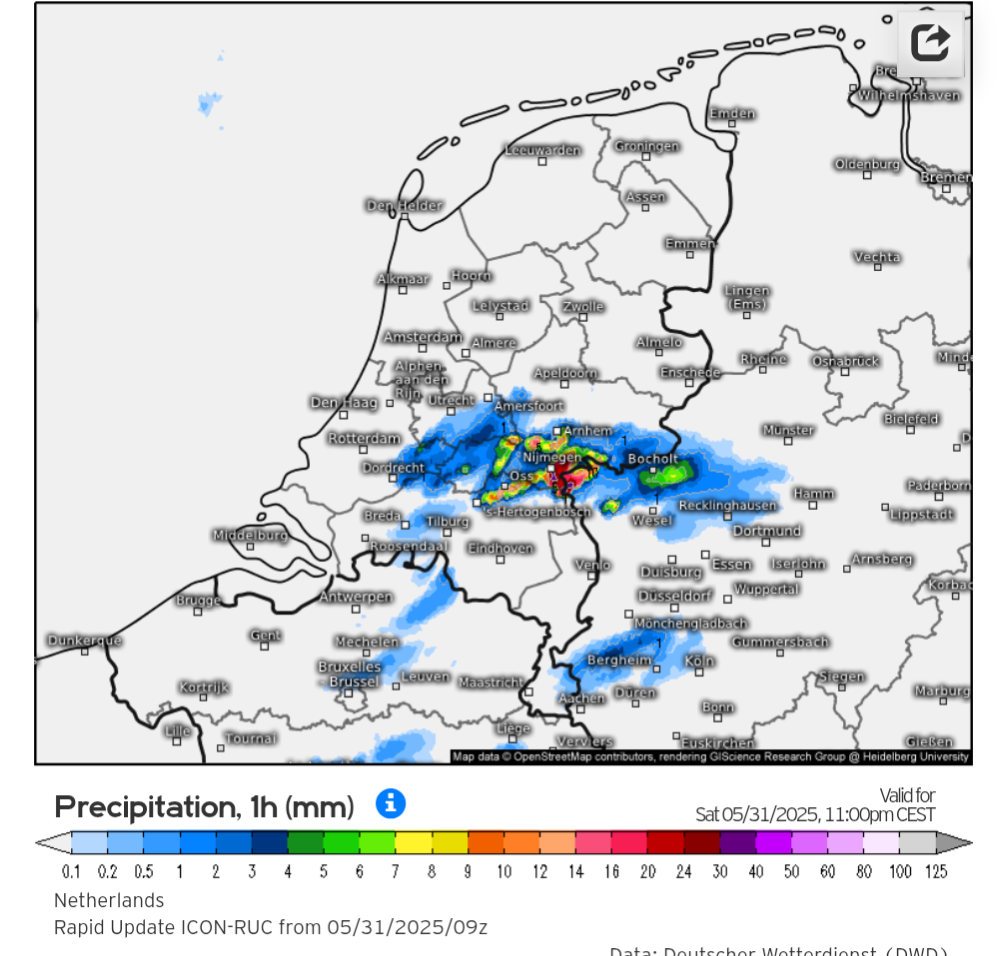 Rapid update van ICON komt nu met noordwestelijke activatie aan het eind van de avond. Dus ook voor onze omgeving nog kansen. Wachten op volgende update