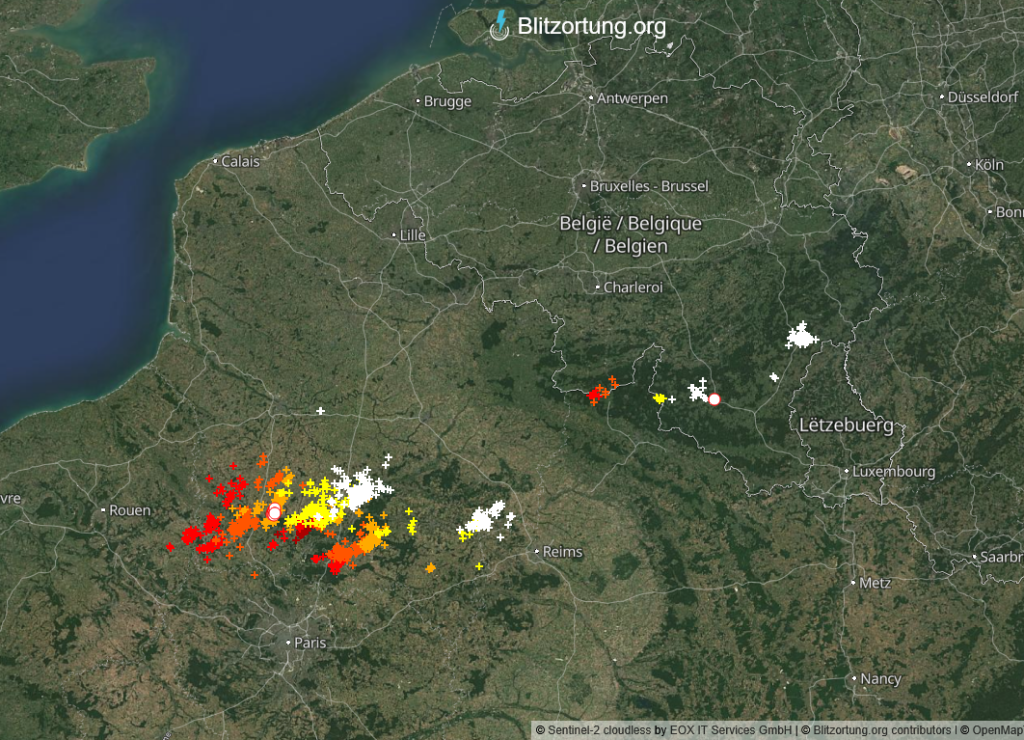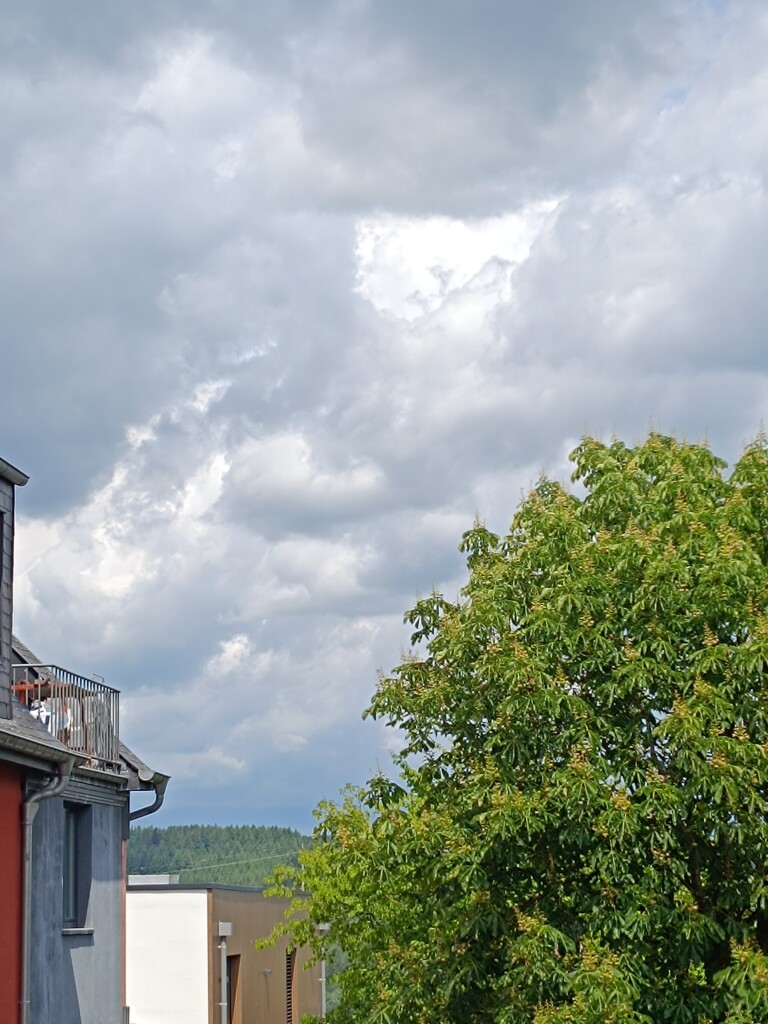 Dat was ook zo verwacht. In die richting zit nu ook wat onweer. Foto vanuit het dakraam genomen.