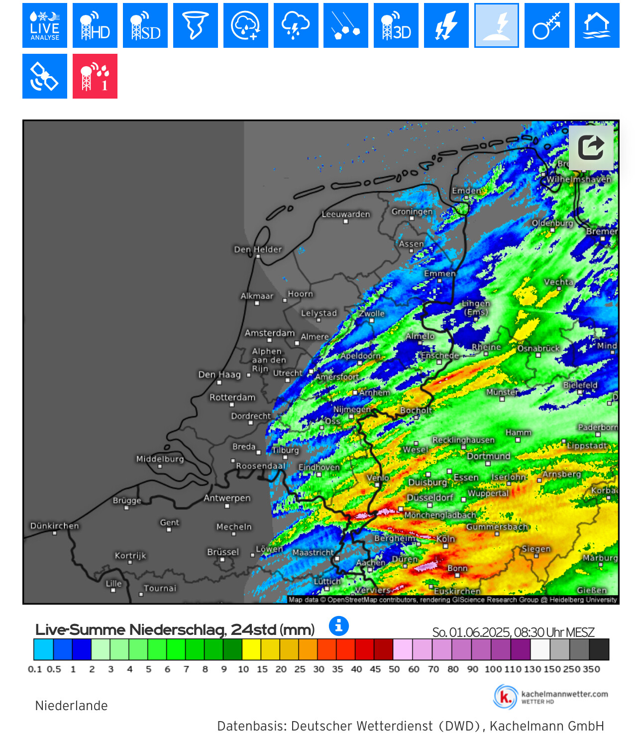 Hier 6,1mm afgelopen 24 uur. Wel lekker veel weerlicht, mijn weerstation registreerde alleen al rondom Nijmegen een 600-tal bliksems.