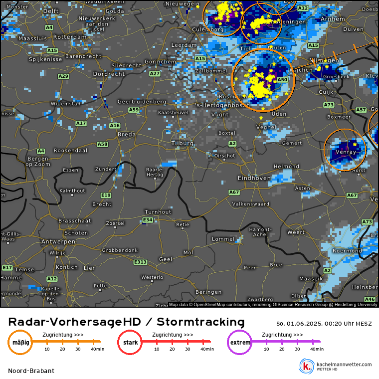 Bliksemactieve hoogteonweersbui met hagel, schade aan de bladeren in de tuin. Gaten tot 2 cm diameter.