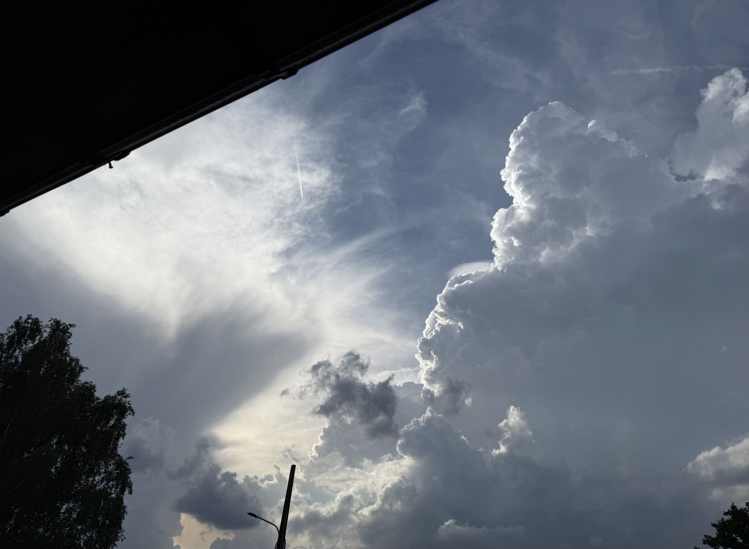 Het was een komen en gaan van prachtige wolken ten noorden van As. Diepe dreunen, later overgaand in hoogteonweer. De buien oostwaarts hielden lang stand maar de nieuwere exemplaren verloren snel aan kracht. Kon de regen bijna aanraken. Eigenlijk best wel leuk, wonen op het eerste verdiep (ondanks hoogtevrees