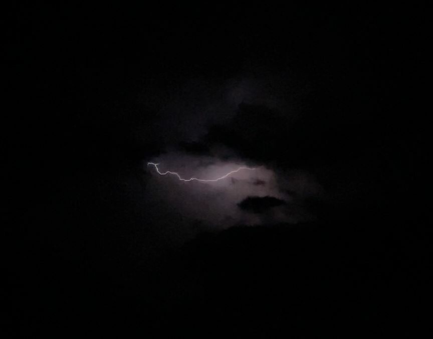 Voor de goede orde: dit zijn allemaal verschillende ontladingen, niet meerdere foto's van één of een paar ontladingen! Daarnaast waren er ook diverse indirecte ontladingen zichtbaar, waarbij wel het licht van de bliksem, maar niet de bliksem zelf was te zien. De foto's zijn niet bewerkt (de eerste is een beetje onscherp).