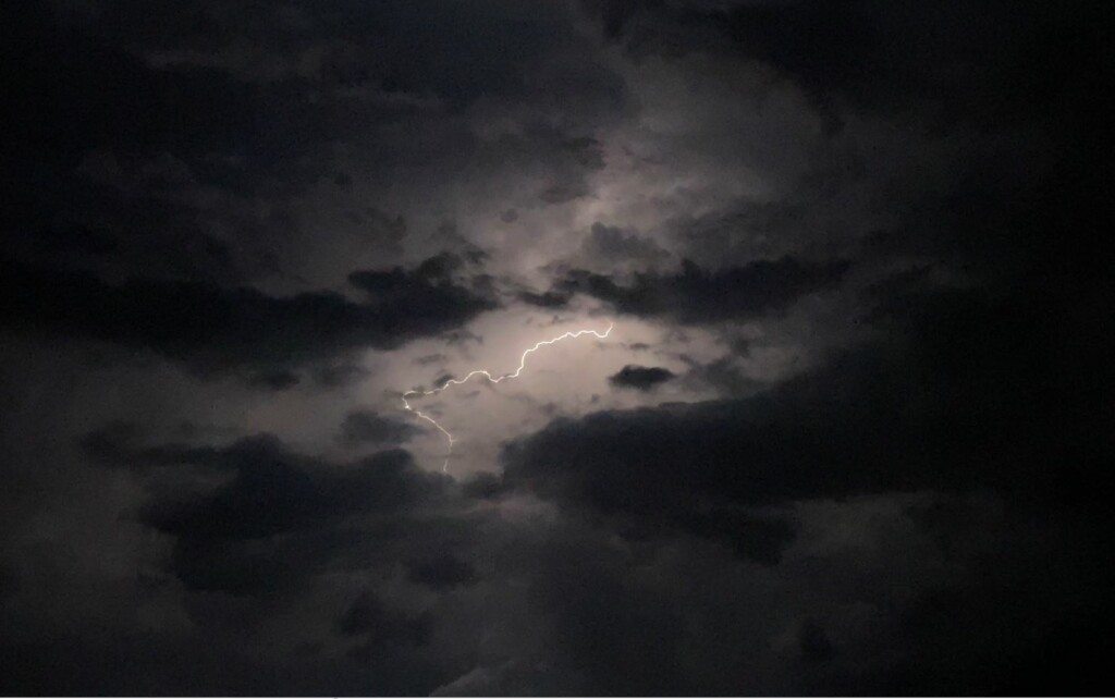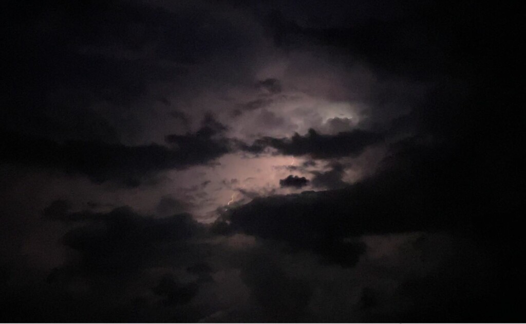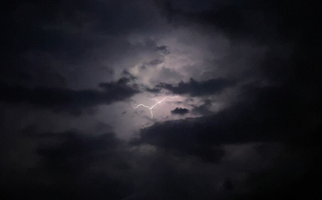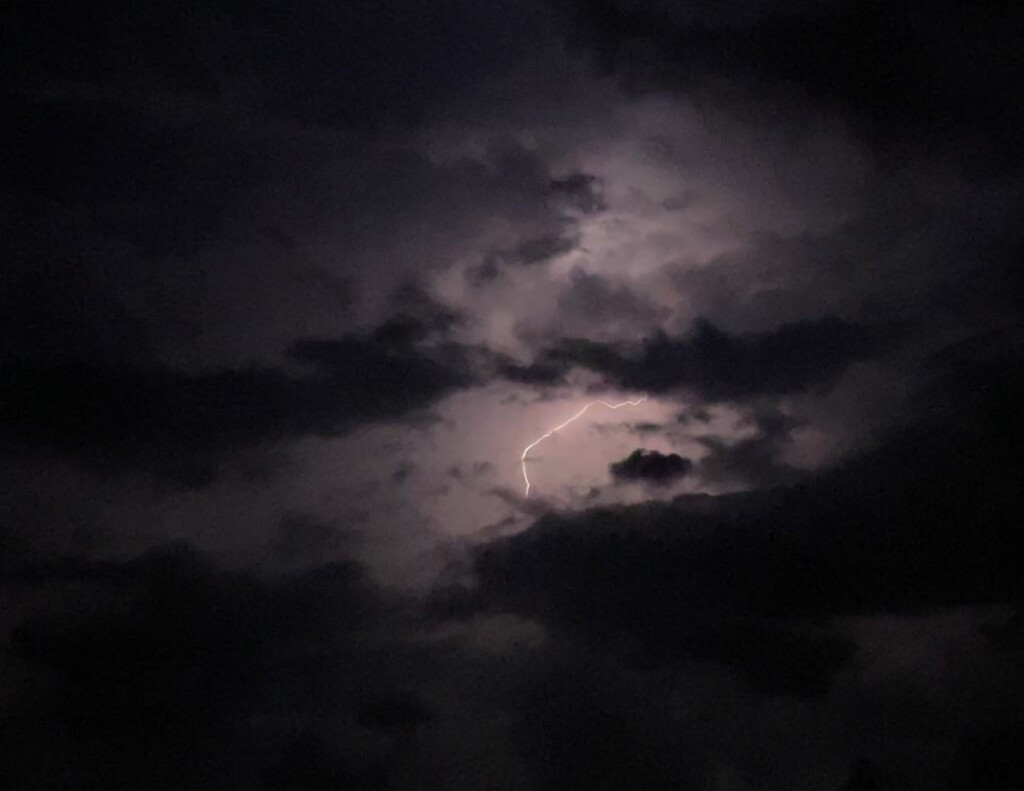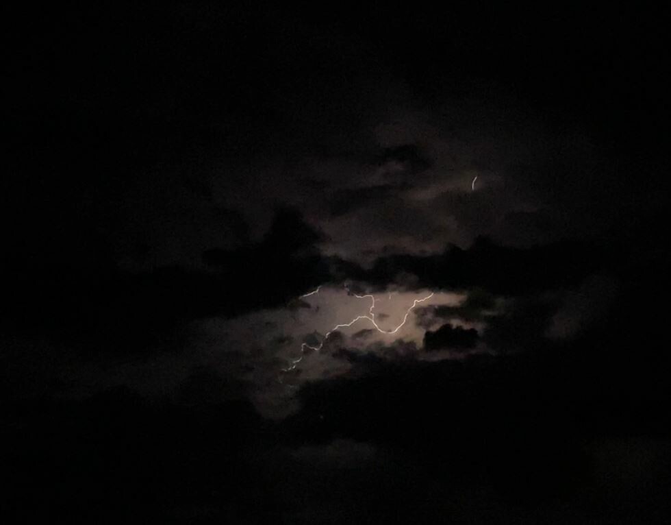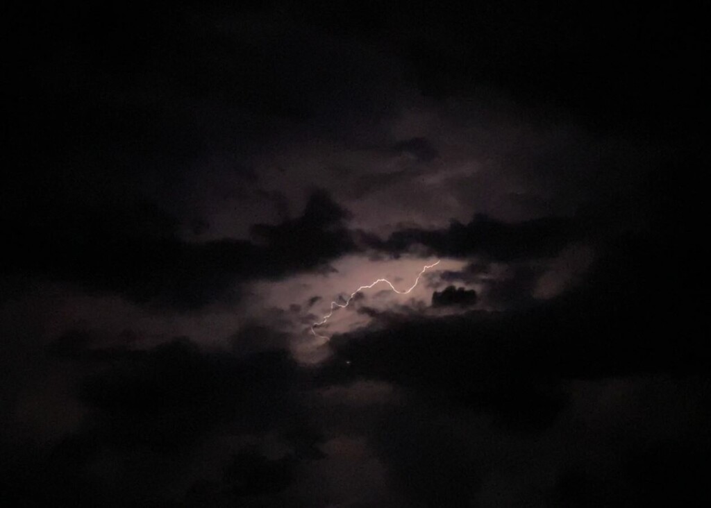 Hier twee onweersbuien gehad. Eén voor, de tweede na middernacht. In totaal hebben die 14,1 mm neerslag opgeleverd (Hellmann). De top van de eerste wegtrekkende bui leverde zeer veel ontladingen op, 15 tot 20 per minuut! De onderstaande bliksemfoto's zijn stils uit een videootje van slechts één minuut, dat ik met mijn iPad heb geschoten, gisterenavond om 23.45 uur.
