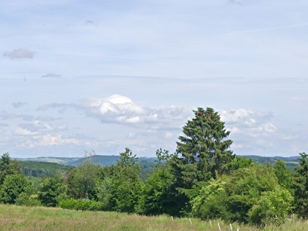Daaronder voeg ik twee foto's toe, waarvan op de eerste nog net iets van een pileus te zien is. De tweede geeft de convectieve bewolking iets verder naar het zuidoosten weer, dat is boven Duitsland.
