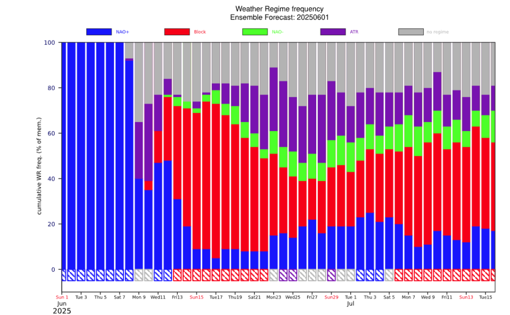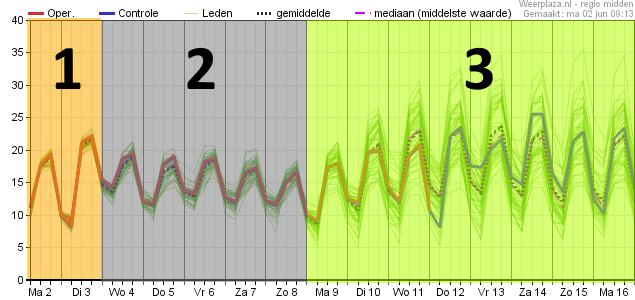 3) Opbouw continentale rug. Neerslagkans neemt af, zonkans neemt toe. Warmer. Kans op continentale luchtsoort stijgt. Vanwege termijn slag om de arm, maar sterk signaal voor zomerweer. Meest kansrijke scenario: blokkade.