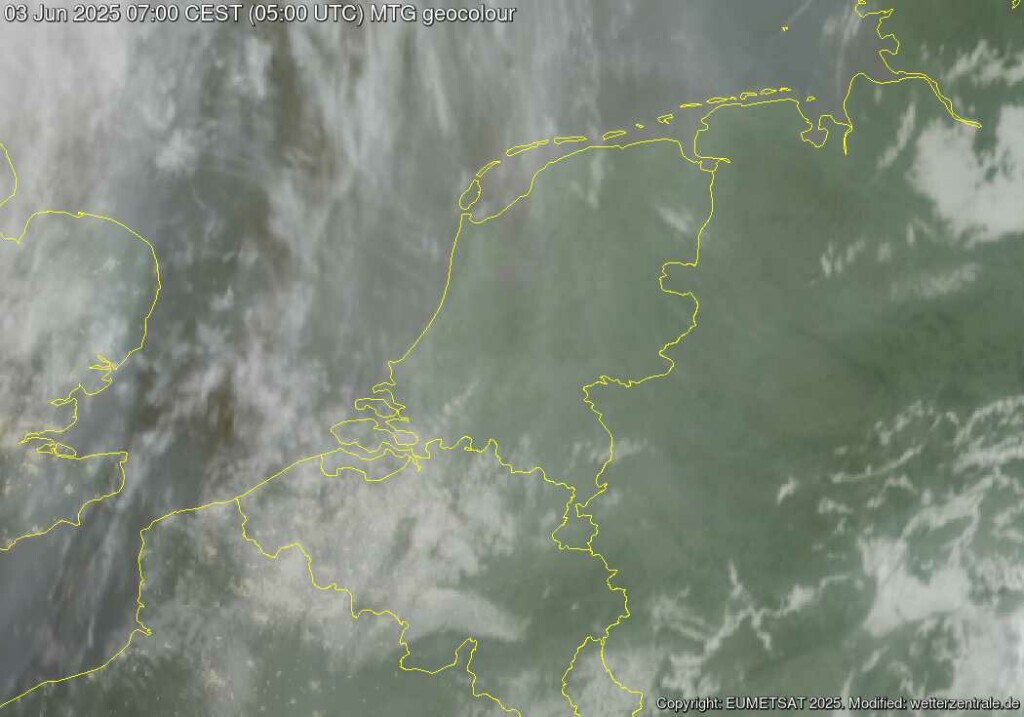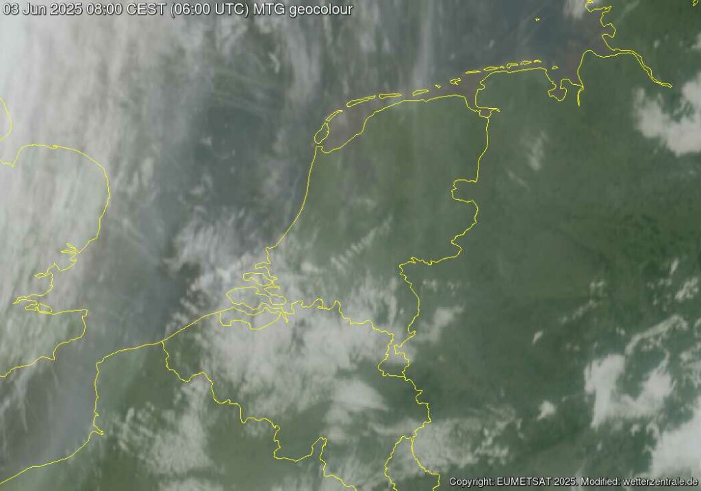 Misschien het eerst ruime halfuur na zonsopkomst nog niet, wel een dikke laag cirrus bij het opstaan om 06:15. Eerste drie kwartier na zonsopkomst registreert zo'n meter trouwens nooit wat, dan staat de zon nog te laag. Daarom ook op een volledig onbewolkte dag nooit 100% zonneschijn bij het KNMI, terwijl dat feitelijk het enige juiste zou zijn op een onbewolkte dag.