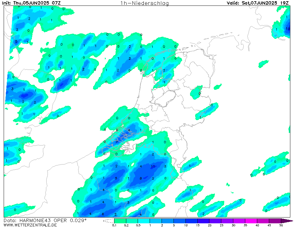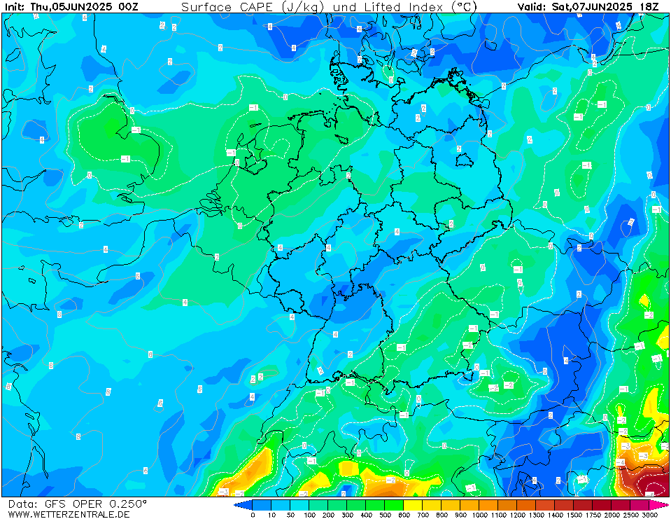 Ik zou de situatie zeker niet explosief noemen gezien de lage CAPE, maar we mogen tegenwoordig blij zijn met elke kruimel die we krijgen. De termijn is +60u dus details kunnen nog veranderen en zeker in een marginale situatie veel uitmaken. Nog even afwachten dus. De guidance meerdaagse meldt het volgende: