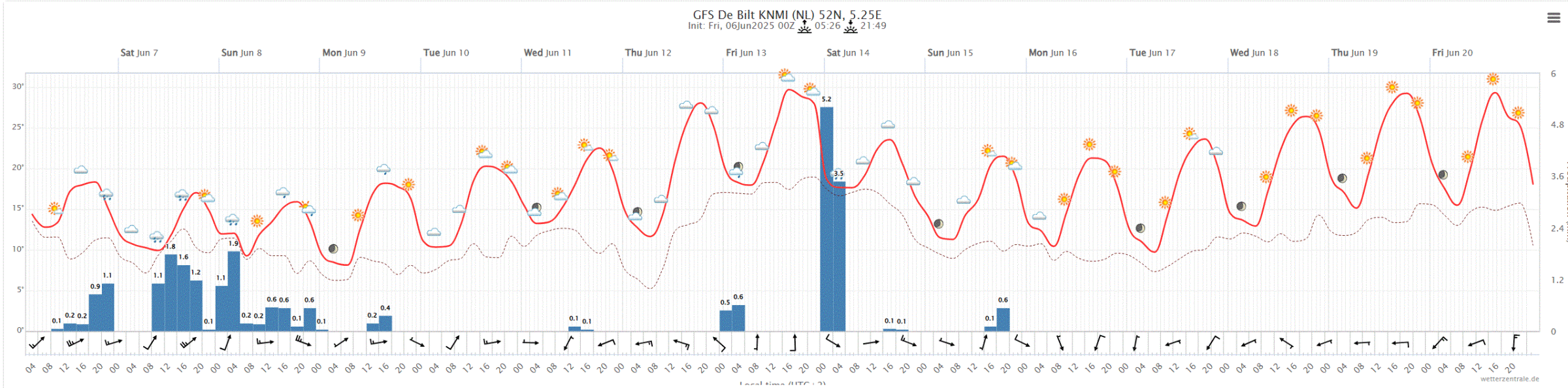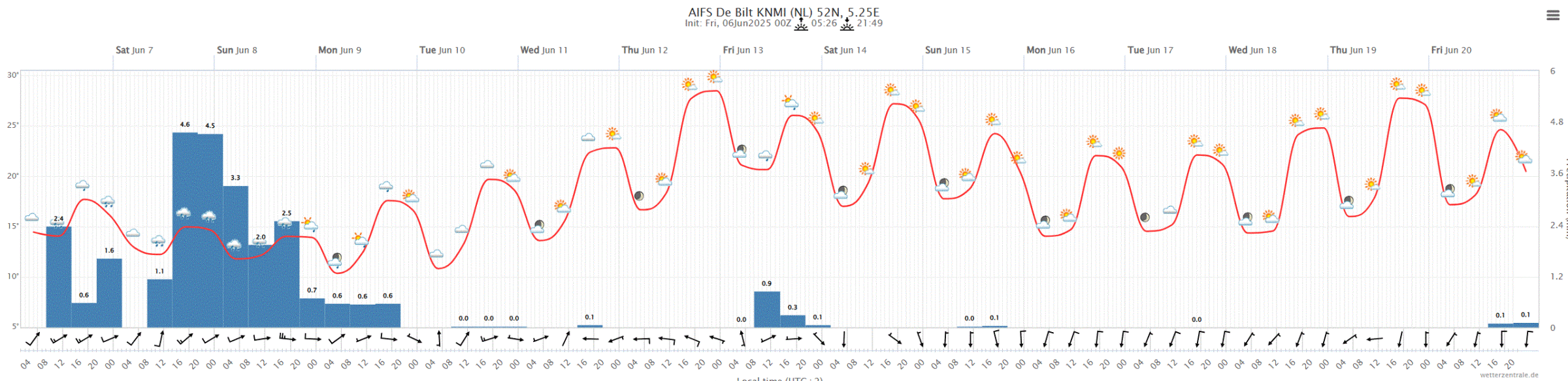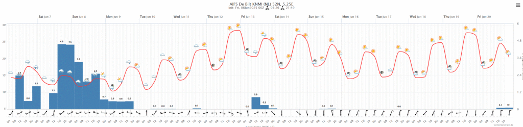 Oper GFS en AIFS warm en redelijk droog vanaf volgende week woensdag.