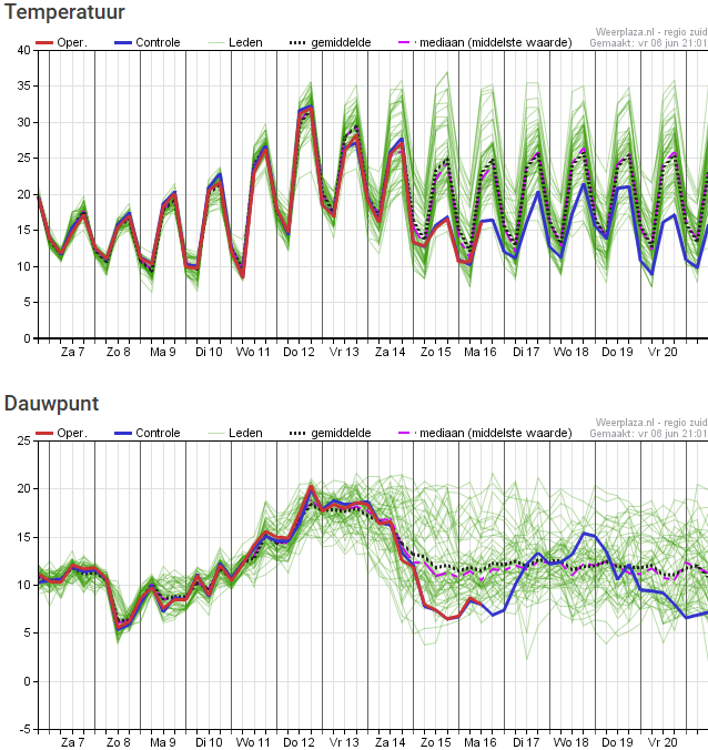 Flink wat weervariatie in deze pluim; de eerstkomende dagen aan de frisse kant waarbij het van tijd tot tijd regent. Na het weekeinde gaat het kwik geleidelijk omhoog met aankomende donderdag wellicht zelfs 30-plussers op de thermometer. Dan wel kans op een paar (onweers)buien. Op de langere termijn blijvend aan de warme kant met kleine regenkansen: