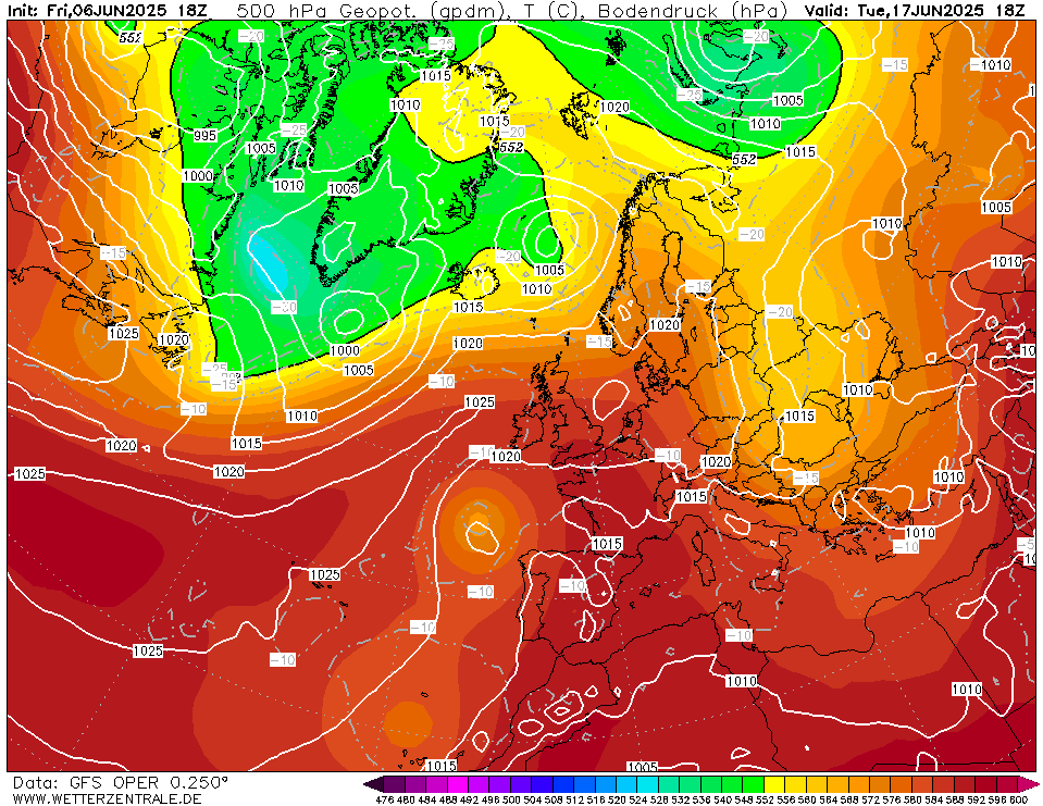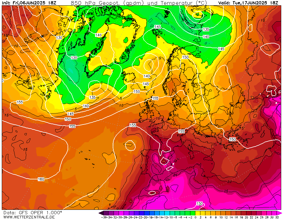 Hitte loert om het hoekje, het enige wat eigenlijk ontbreekt is een sterker laagje die -aan de oostflank ervan- de warme lucht naar het noorden stuurt. Verder echt kaarten die onder sommigen onder ons als "Grote Zomer-kaarten" beschouwd kunnen worden, of in ieder geval het begin ervan.