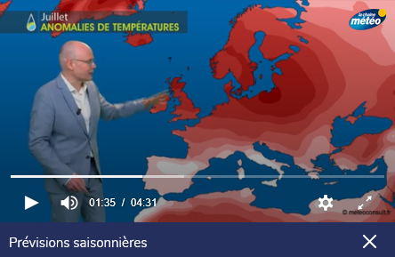 Gisteren verscheen bij lachainemeteo de driemaandse verwachting voor juli, augustus en september. Dat slaat dus de rest van juni over, en gaat tot aan het begin van de herfst.