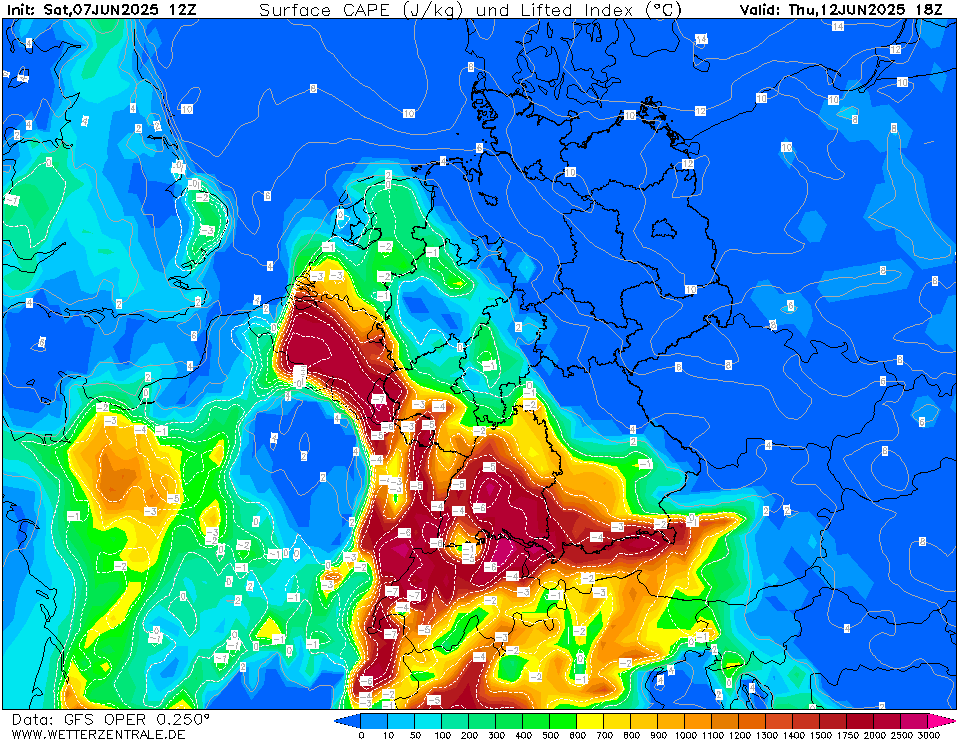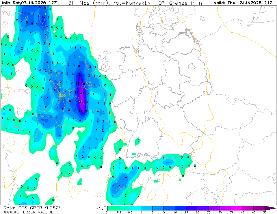 Als gevolg van een stevig onweerscomplex. Wat convectieve neerslag betreft zit er erg veel spreiding (qua locatie en tijd) tussen de verschillende modellen en ensembleleden. En de neerslagsignalen zijn nog niet overtuigend. Maar wat zou het fijn zijn als dit toch eens uitkwam.