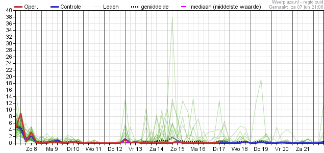 Donderdag - zaterdag leden met veel CAPE, tegelijkertijd nauwelijks leden met daadwerkelijk neerslag.
