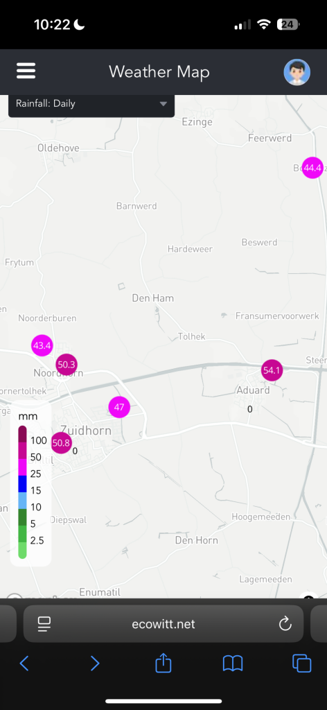 Hier 23.7mm. Zwaarste neerslag aan westzijde dorp?