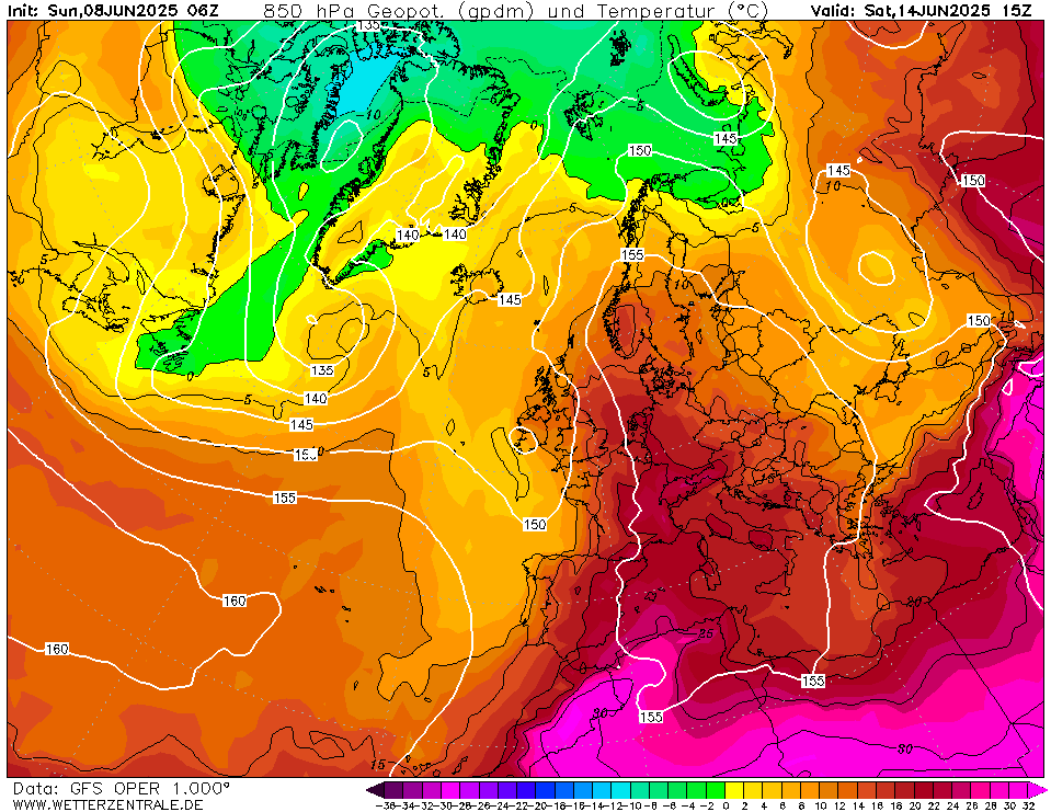 GFS06Z, donderdag en vrijdag bloedheet. Edit: zaterdag tot 37°C.
