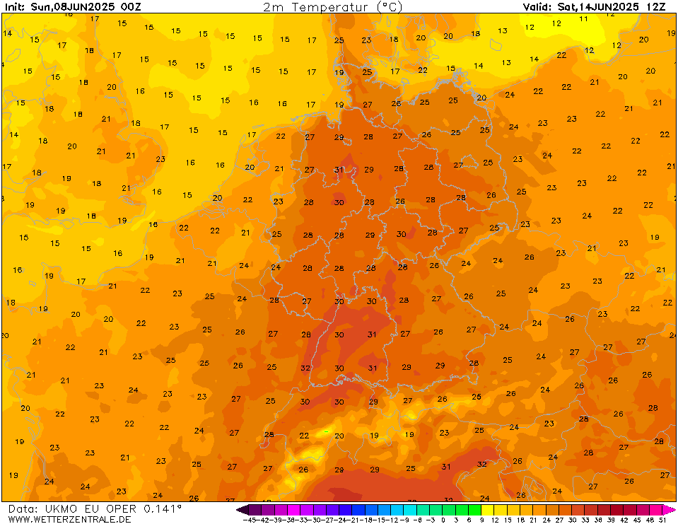 Noorden bij deze kaarten op zaterdag ook wel 32 - 34 graden.