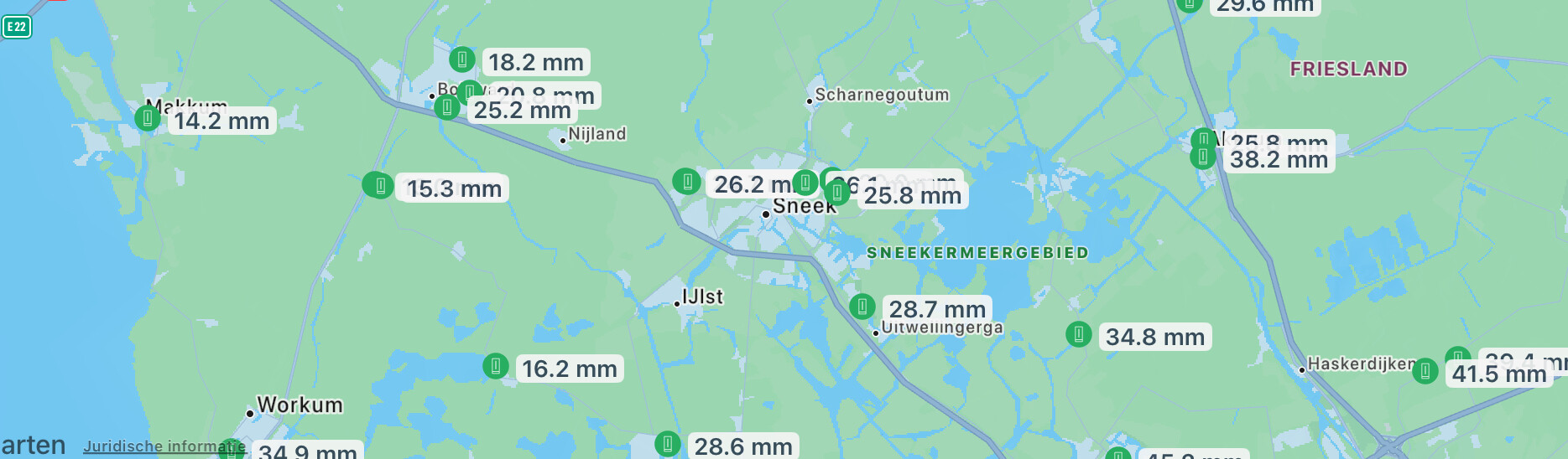 Valt het in Sneek nog mee, 25 tot 30mm, even verderop rond de 45 mm.
