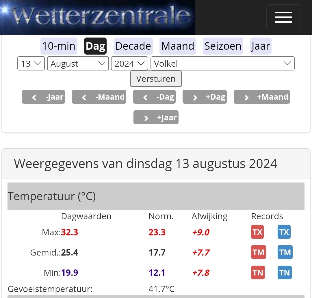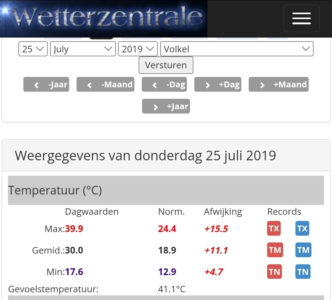 Als humidex = gevoelstemperatuur, dan: 41,7°C