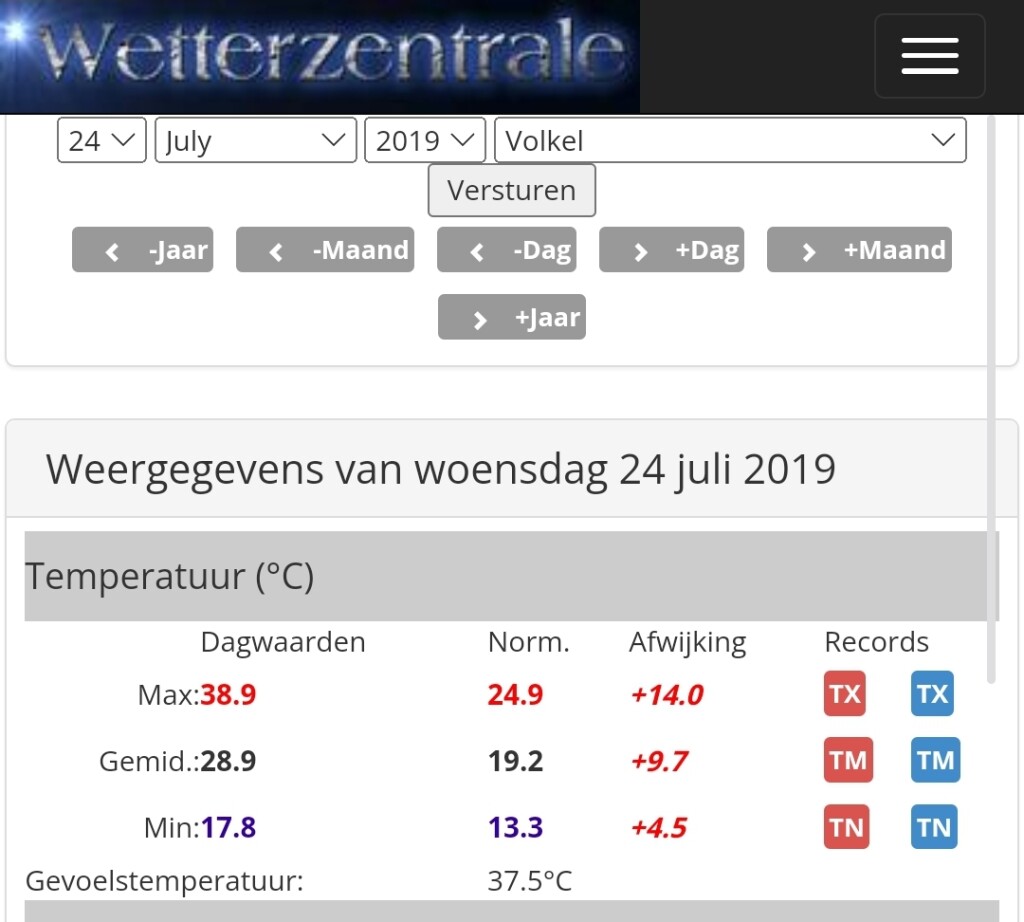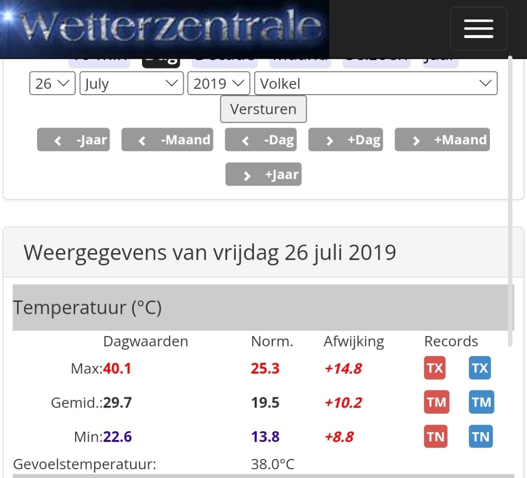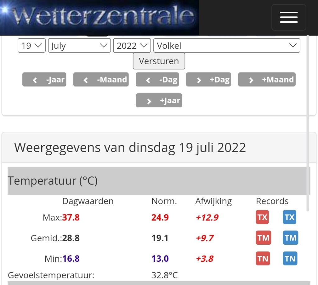 Ter vergelijking 24, 25, 26 juli 2019 en 19 juli 2022.