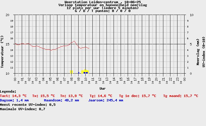 Lichte regen, 14 graden, 4.3mm sinds middernacht.