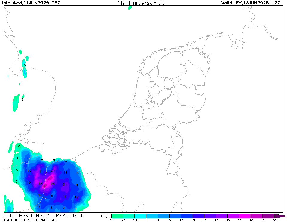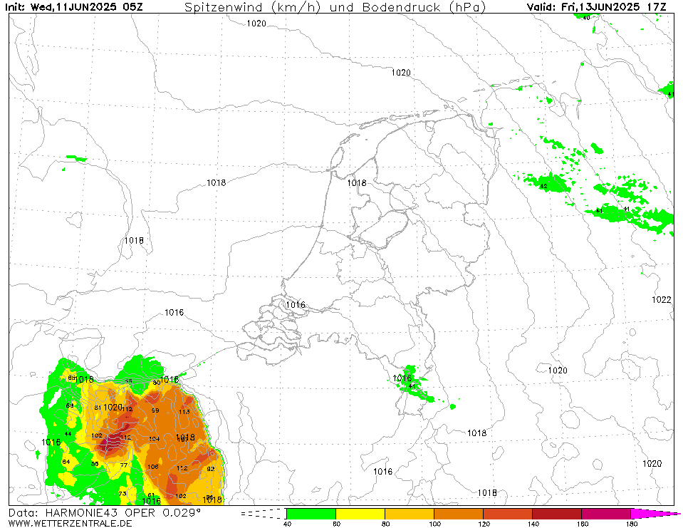 HARMONIE-V43 05z | MCS met extreme windstoten op vrijdag