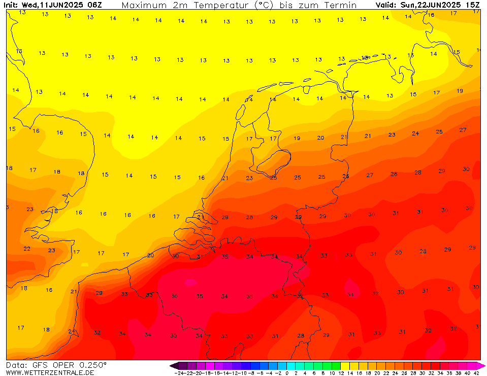 wat een bizarre kaart idd. Je moet wel een hele dag stromende regen hebben om onder de 14-15°C te blijven