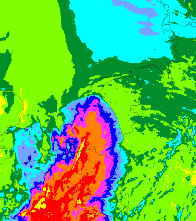 HARMONIE-V43 04z | Squall line met windstoten van 100-150 km/u