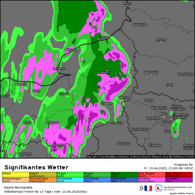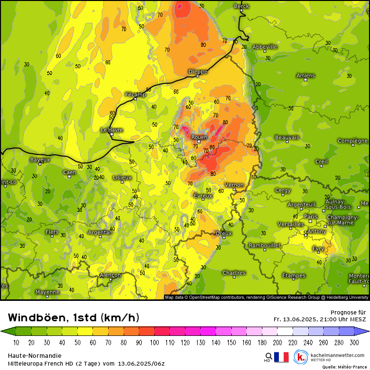 NB: Dit is niet speciaal de plaats die het het zwaarst te verduren krijgt, ook niet in deze berekening van Arome.