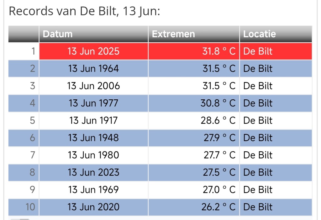 Afgelopen dinsdag was m'n inschatting 29 - 34 graden voor vandaag in Nederland. Lijkt, m.u.v. de westelijke kustgebieden, goed uit te komen.