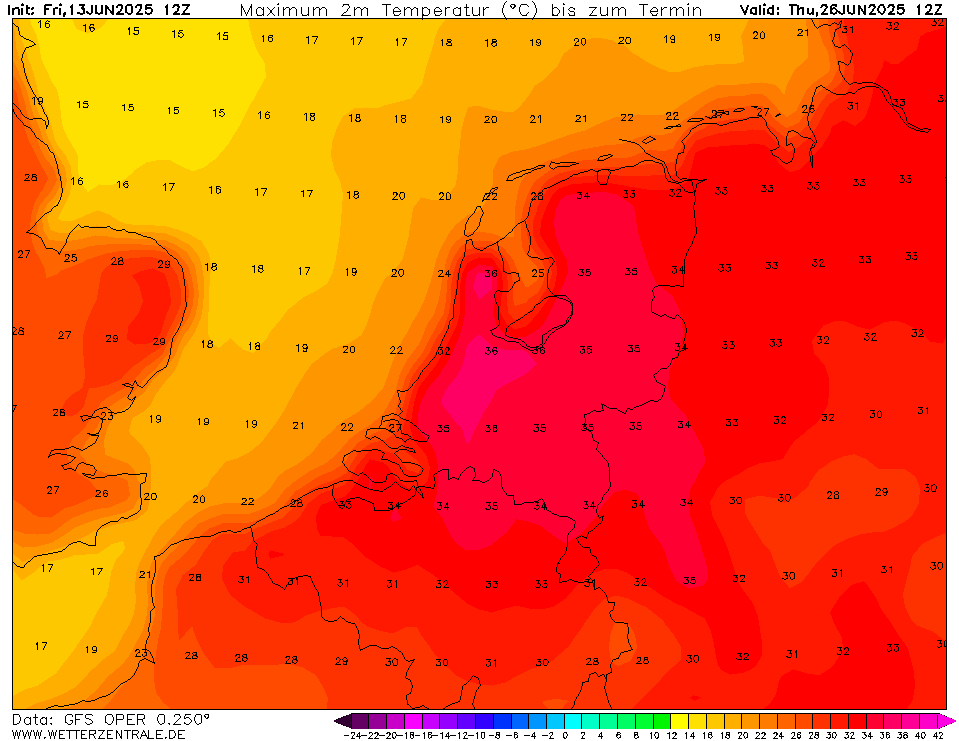 Tot de 30+ weer in beeld komt meest tussen 22 en 27 graden met veel zon en nauwelijks regen. Dan te bedenken dat het pas zomer vanaf 21 juni is. Ook op ult zitten weer opties van 30-36 graden. Tot die tijd ook af en toe richting tropische waarden.