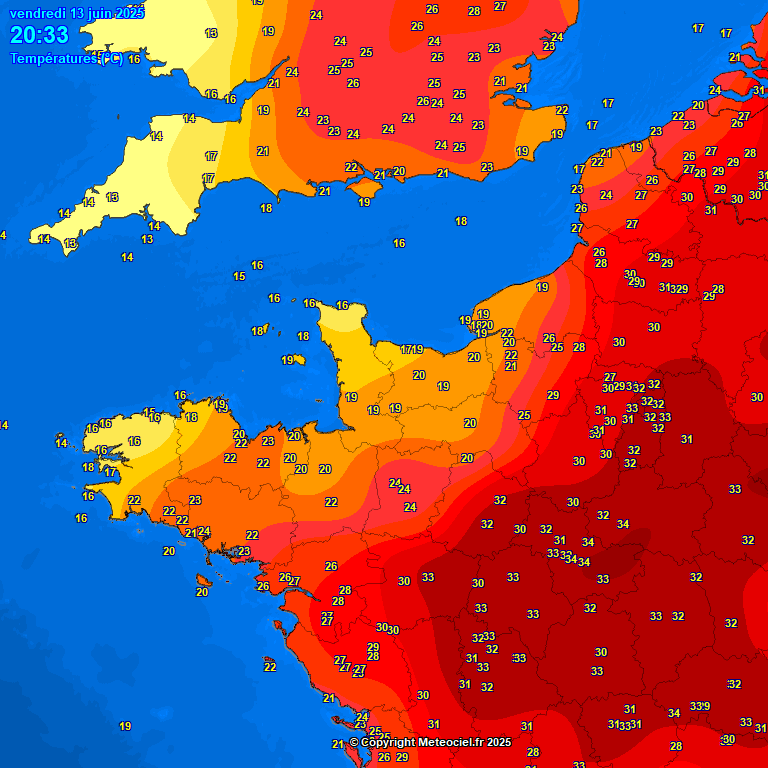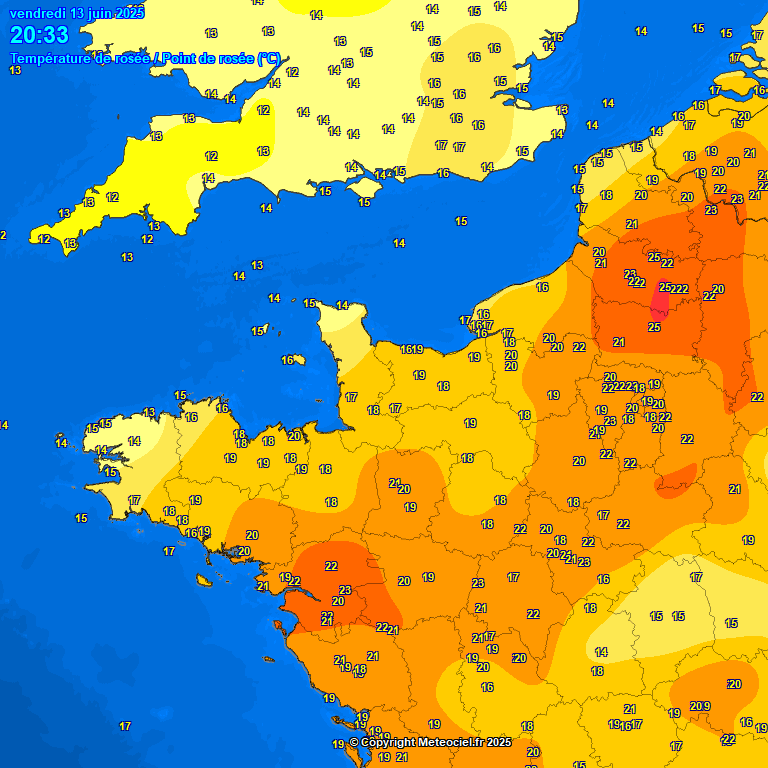 Gigantische bliksemactiviteit ook. Temperatuur en dauwpunten zijn nog op niveau in Noord-Frankrijk, maar vrees dat het nachtwerk wordt voor de Benelux, als het al komt.