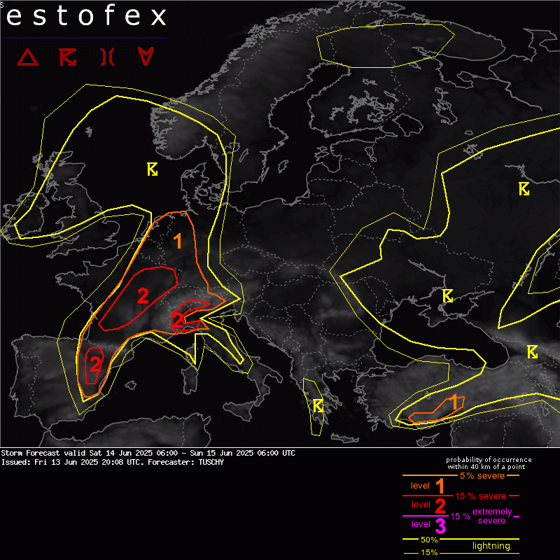 "A level 2 was issued for parts of France mainly for large to very large hail, severe gusts and heavy rain."