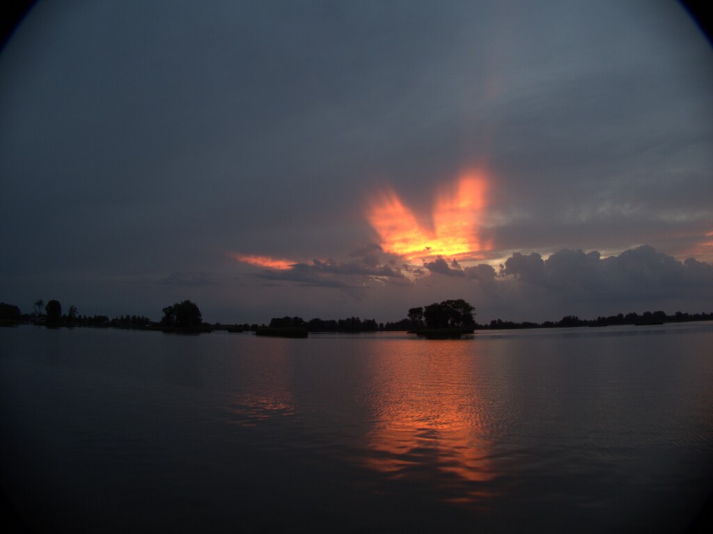 Zeven minuten voor zonsopkomst (na onweersbui in de tweede helft van de nacht) leken er 2 vurige handen uit de bewolking te steken.