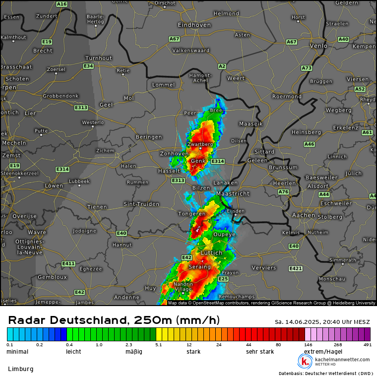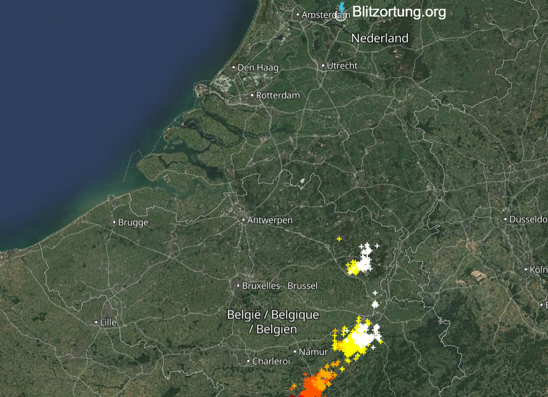 Nu ter hoogte van Genk. Trekt in oostnoordoostelijke richting.