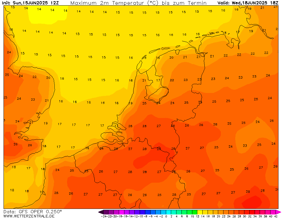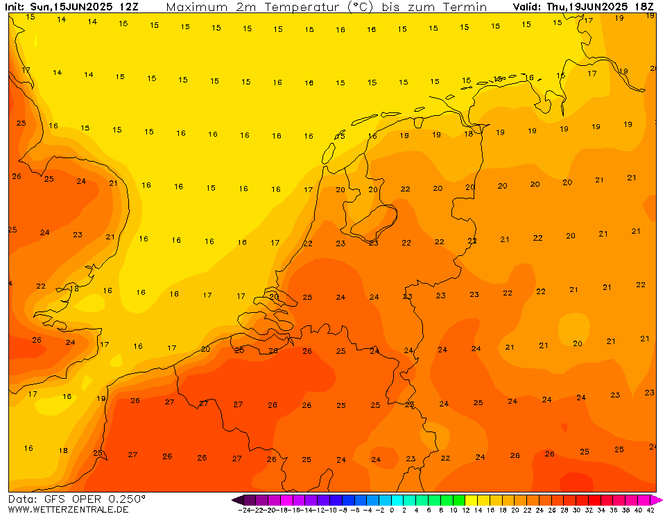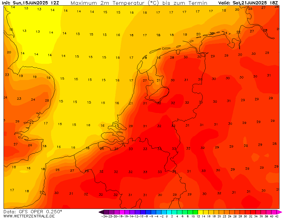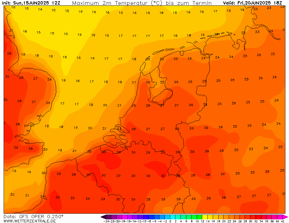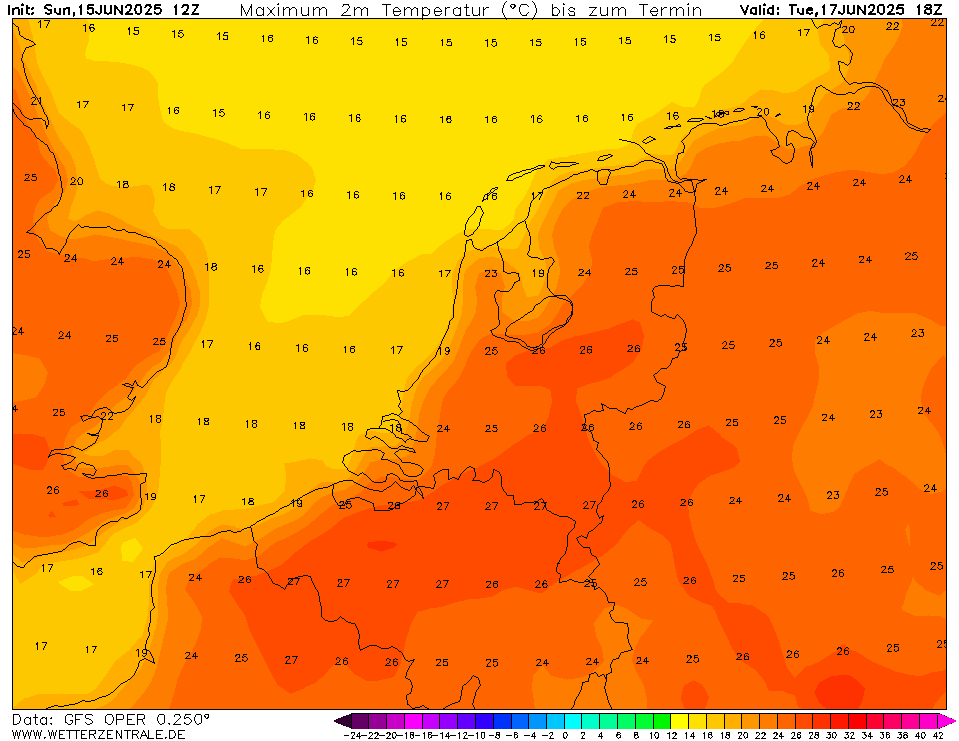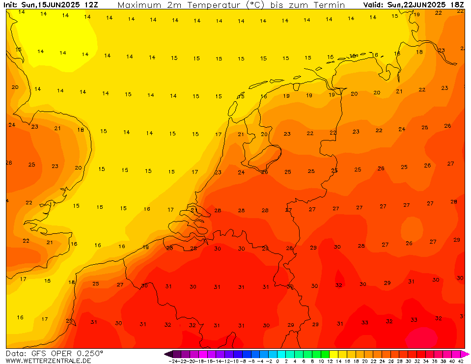 Hierdoor felle bakhitte op de 23e in delen Benelux volgens deze oper
