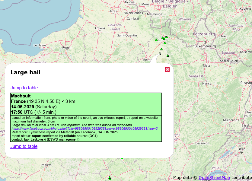 Dat zijn de noordelijke meldingen op de kaart van de ESWD. De zuidelijke gaan over wat ik hier beschrijf rond 20 uur.