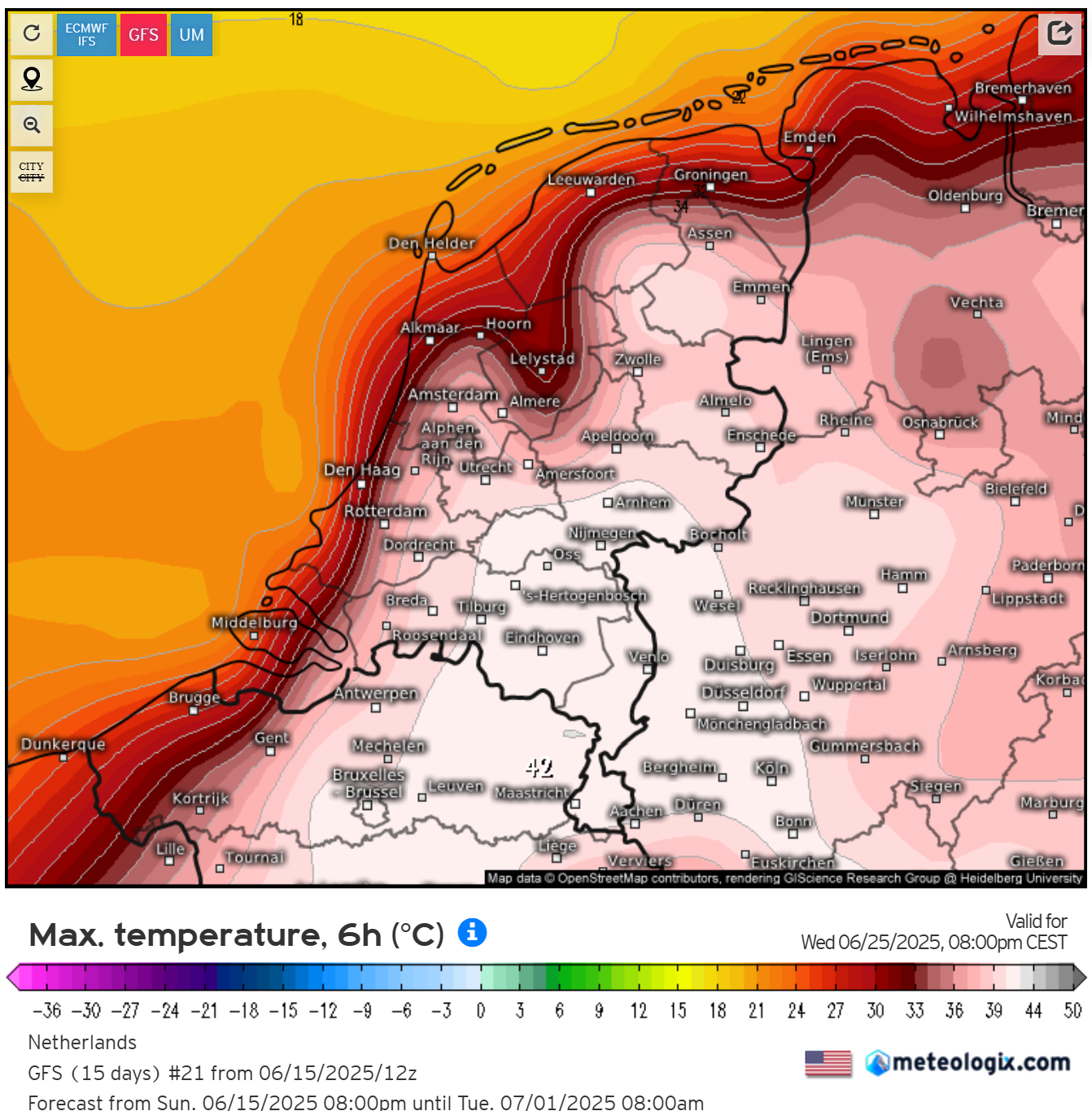 Dat zou een verpulvering van het junirecord betekenen, dat staat nu op 37,2 graden in Maastricht... Tevens natuurlijk een nieuw all-time hitterecord