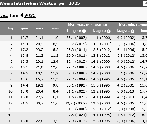 Er ontbreken bij Westdorpe nog gegevens, tenminste bij weerstatistieken. Het kan zijn dat de berekening daardoor niet helemaal klopt? Maar Westdorpe had ook regelmatig lage minima dacht ik.