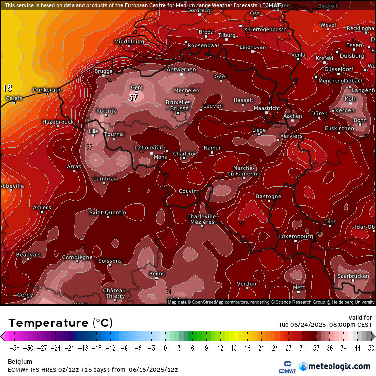 Tot 37° in het Gentse. Erna verplaatst de ergste hitte oostwaarts.