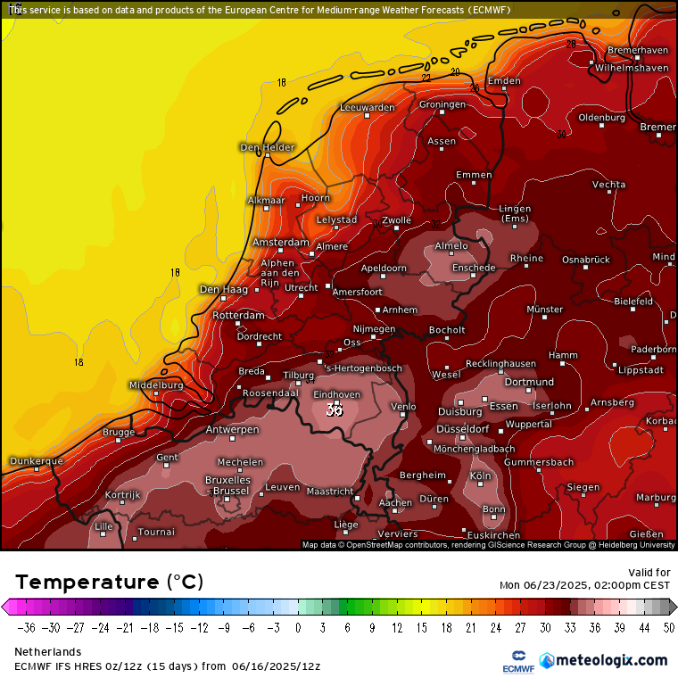 Zeewind is op die kaart net binnengevallen, Tmax valt eerder.